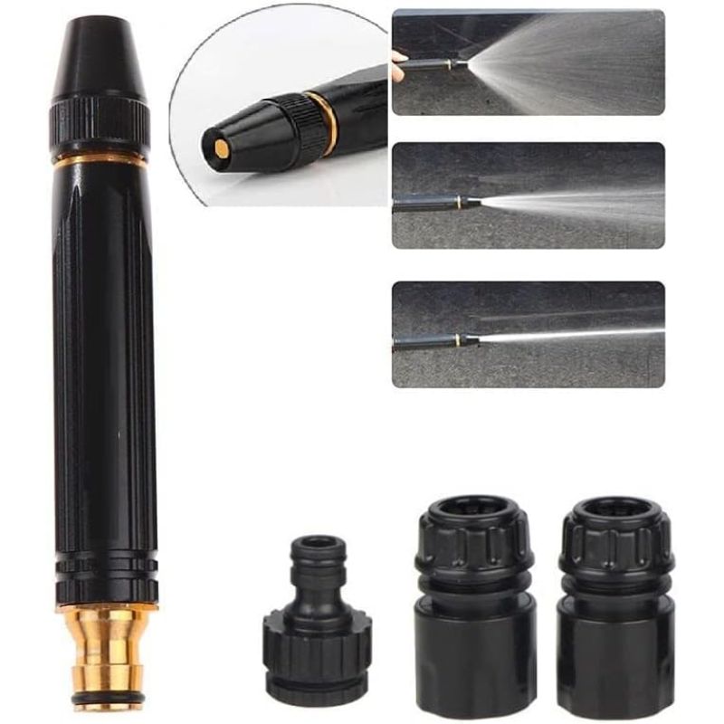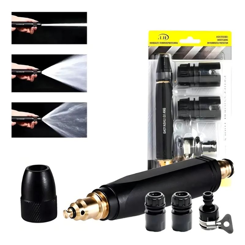 Solo conectalo a tu manguera, abre el paso de agua y aumenta la presión del chorro. Ideal para limpieza exterior en segundos.